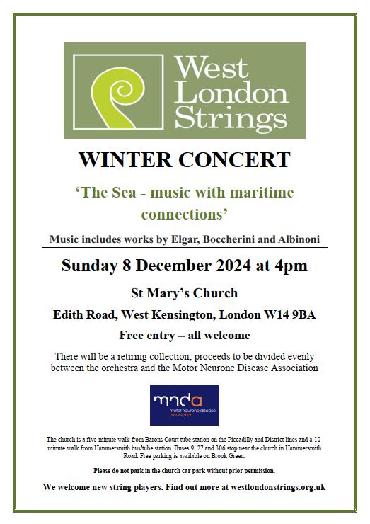 Venue: St Mary’s Church, West Kensington (2 Edith Road, W14 9BA)